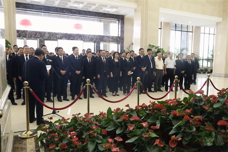 9月 28日,紀(jì)念老董事長(zhǎng)阮加根先生逝世三周年活動(dòng)在閏土生態(tài)工業(yè)園科技大樓舉行。董事長(zhǎng)阮靜波,公司中高層管理人員,退休人員代表,道墟鎮(zhèn)歷任老書記等百余人參加。