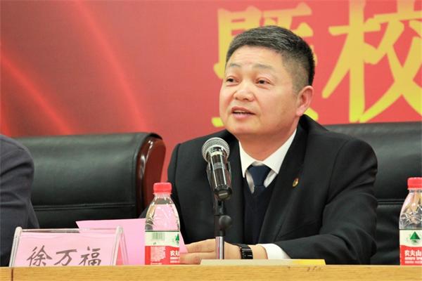閏土股份公司總經理徐萬福致辭。他指出,中國經濟已經由高速增長階段轉向高質量發展階段,需要不斷增強經濟創新力和競爭力,而實現創新這一驅動力,關鍵在于創新教育和創新人才。閏土股份公司經過三十多年的砥礪前行,如今成為全球第二大染料生產供應商、國內染料行業龍頭企業,正是重視企業人才培養與注重科研創新所取得的成績。目前,公司已與國內多所知名高校建立合作關系,組建了閏土化工研究院研發平臺,今年7月與北京化工大學簽訂戰略合作協議,更是開啟了校企之間項目合作、科技創新、產研一體、人才培養的新篇章。徐萬??偨浝肀硎?,大學既是選賢舉能之地,又是培育英才之所,他鼓勵同學們在“求學”的同時要“修德”,并誠邀大家到閏土參觀實習與就業,充分施展個人才華。