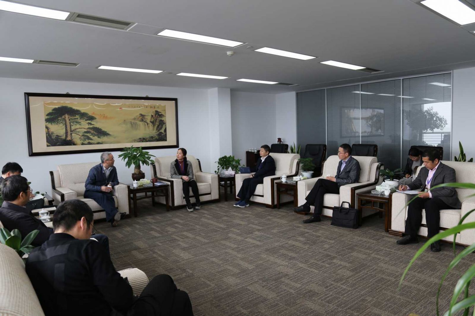 11月4日,中共紹興市委常委、組織部長吳曉東等領導來公司考察調研。公司董事長阮靜波、總經理徐萬福、董事長助理丁興成陪同。