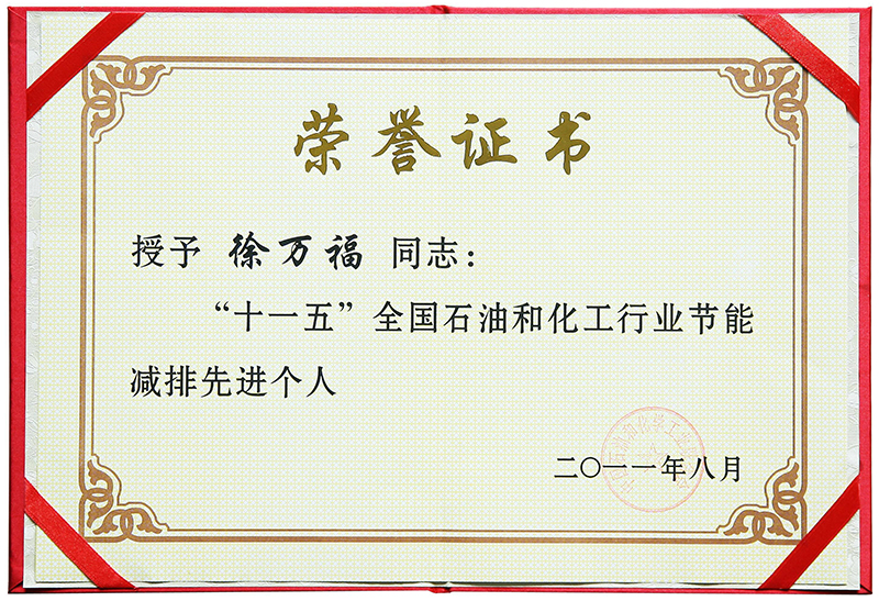 常務副總徐萬福榮獲“十一五”全國石油和化工行業節能減排先進個人。